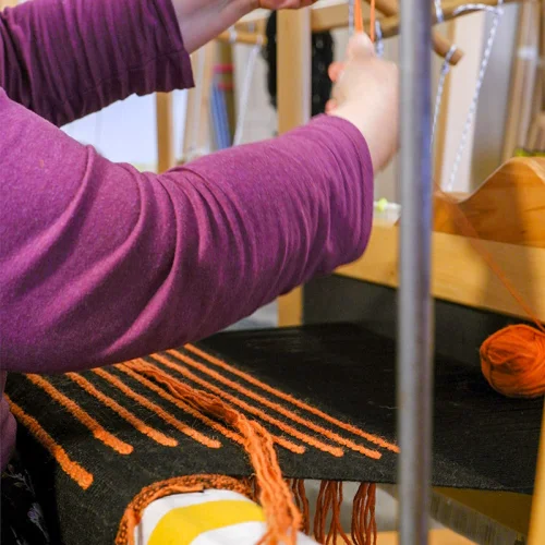 Weft: 100% Wool. It is dyed with natural dyestuffs (Walnut shell, root,