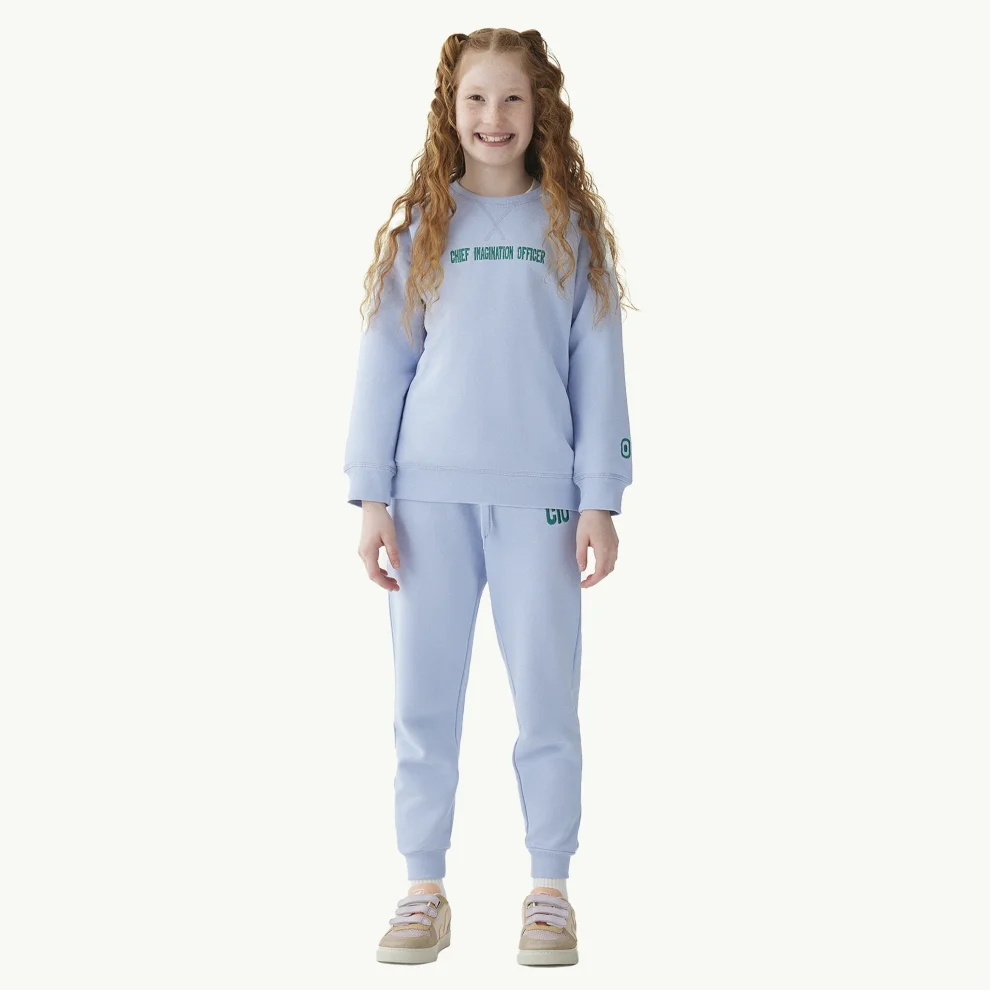 Our signature Kids Sweatshirt, Designed with a comfortable relaxed fit and Raglan sleeves, it showcases the 'Chief Imagination Officer' embroidery at the chest and our iconic brand emblem on the sleeve. Crafted from 100% GOTS certified Organic Cotton, its very soft and gentle on the skin