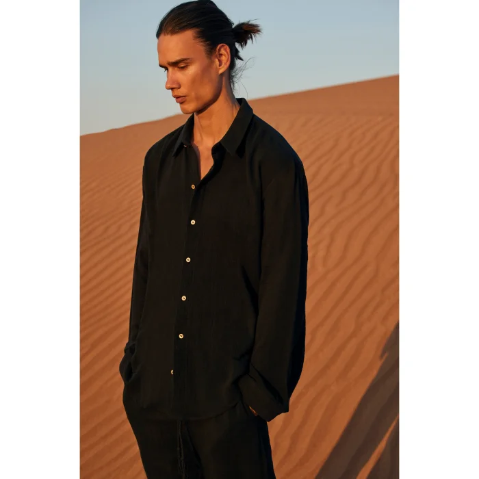 Shirt: -Relaxed fit, -Made of 100%Cotton muslin, -Spread collar, -Button fastening, -Buttoned cuffs, -Back center pleated, -Quick-drying, -Does not require ironing \ Pant: -Relaxed fit, -Made of 100%Cotton muslin, -Spread collar, -Button fastening, -Buttoned cuffs, -Back center pleated, -Quick-drying, -Does not require ironing