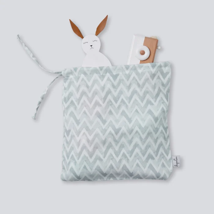 Product: Muslin Clothes Pouch - Blue Zigzag