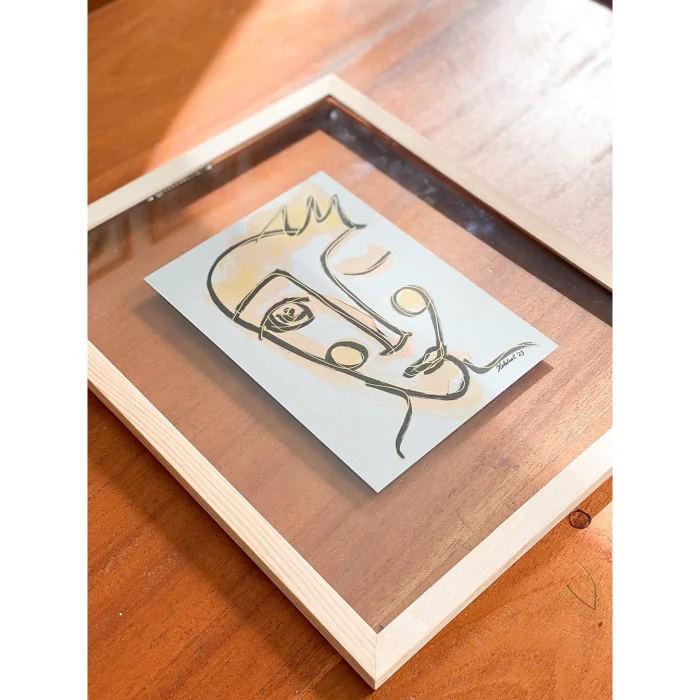 Material: acrylic paint, pencil and water-based marker on 220 g of gray paper. Double glazing, wooden frame.