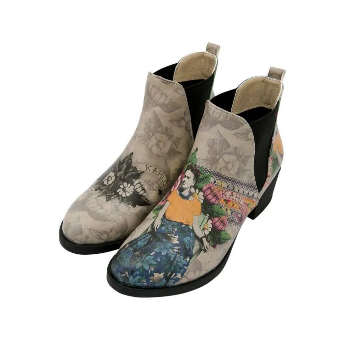 Product: Women Vegan Leather Ankle Boots - A Flower From The Past Frida Kahlo Design