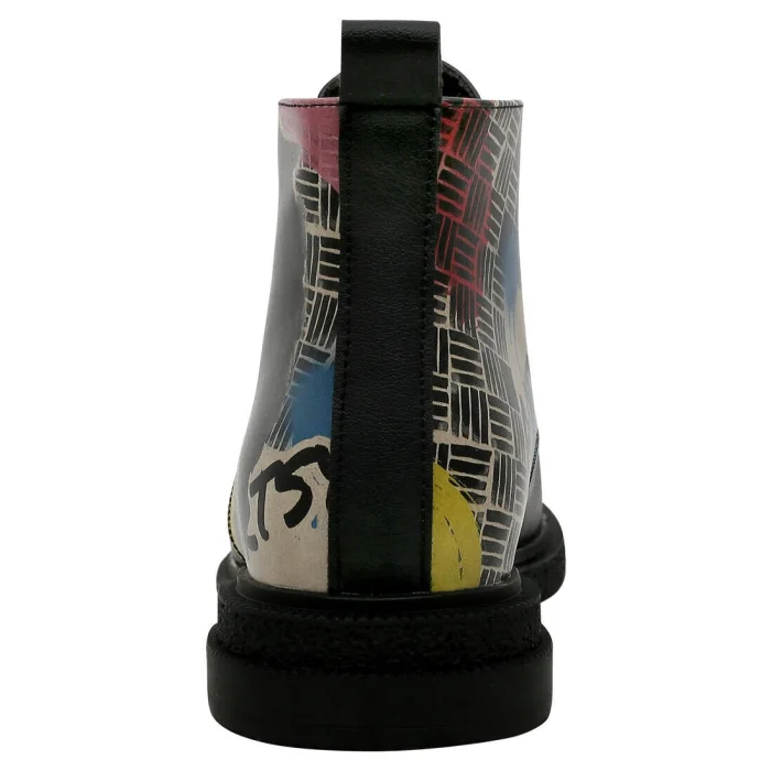 Product: Women Vegan Leather Ankle Boots - Artsy Cat Collage Design