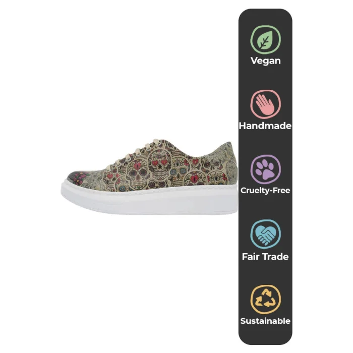 Women Vegan Leather Sneakers - Remembrance Of Frida Kahlo Design