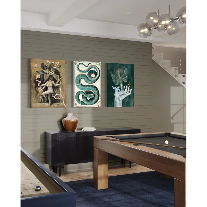 ofMeaning The rhythm of nature with the leap of the serpent, the strength of the woman and the pain that comes out of the wings of the bird; These three symbols meet in our home. This union reflects the complexity of life and the diversity of our home's energy. The transformation of the serpent, the softness of the woman, and the sadness of the bird tell the story of our home. These symbols come together with the aim of maintaining balance in our home and promoting inner growth.