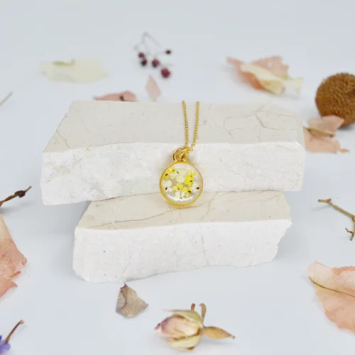 The way the tiny flowers are arranged is unique and no part will be the same as the other, the product will be exclusive only to its owner.The metal parts of the product and the chain are 14 karat gold plated.