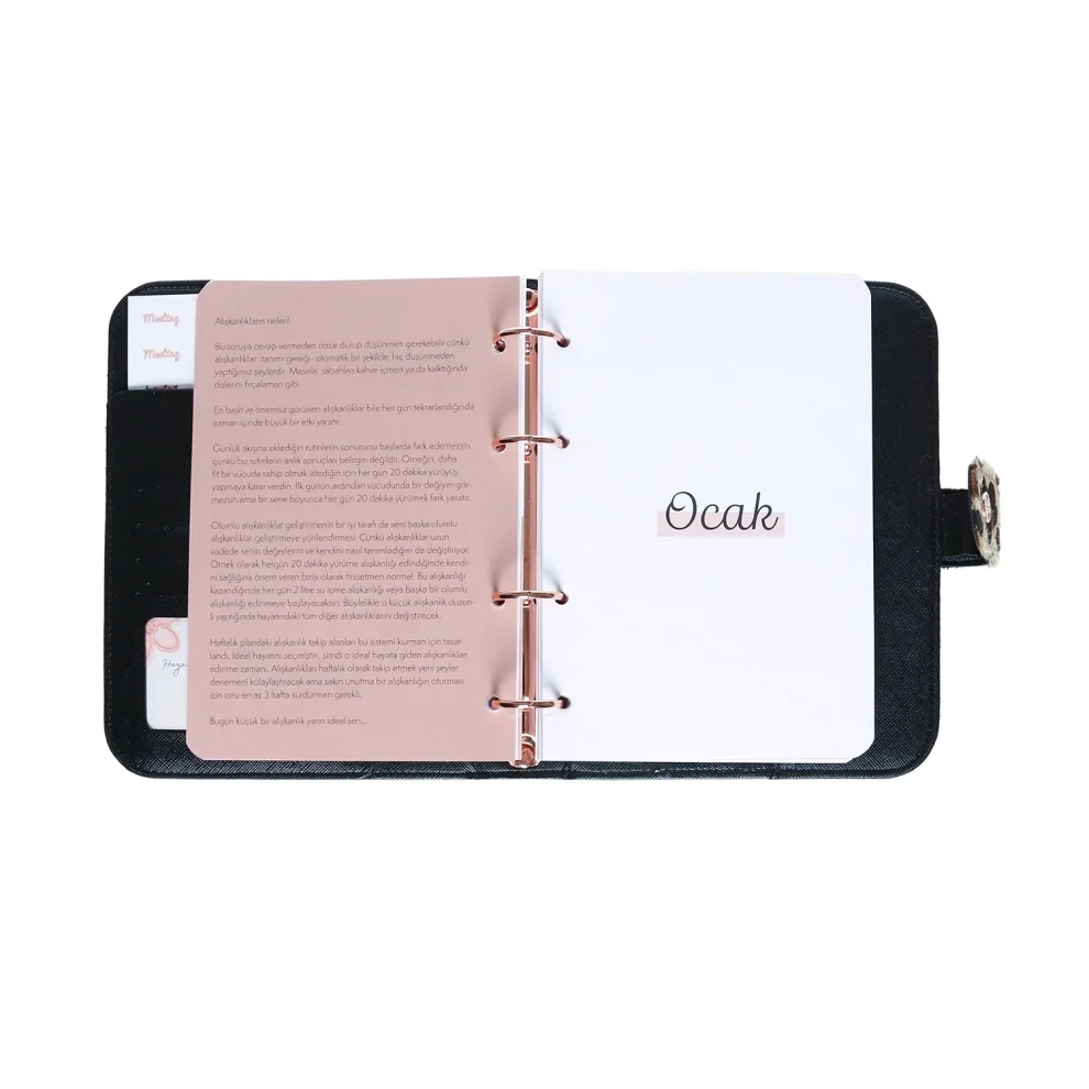 -In the inner part of the agenda, there are small lessons that we offer to strengthen you in 6 different areas. We recommend that you go back and look at these lessons from time to time to have a good year.