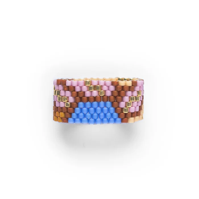 Rings are handsewn with glass beads. It is pretty robust and will not be damaged unless it is forced. It is not flexible and does not stretch much over time. There is no harm in contact with water.
