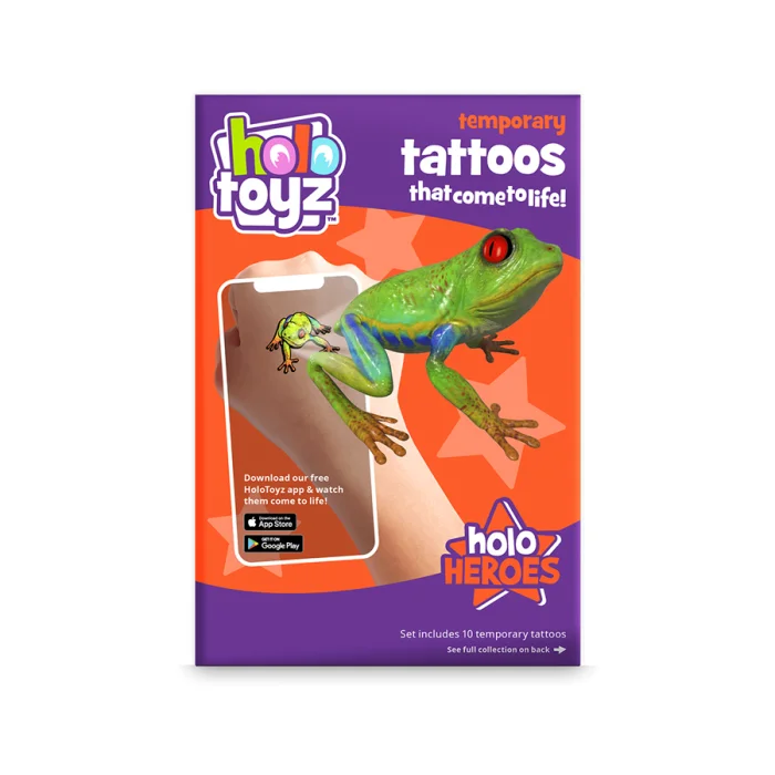 Our HoloToyz temporary tattoos are safe and non-toxic. Each pack contains 10 different designs and animations.