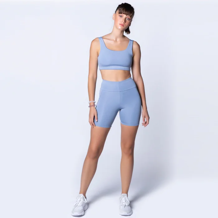 X shape glittered stitches on the sides, high-waist, body shaping biker in the coolest baby blue ever. She provides unique comfort thanks to its elasticity and has a natural and soft feel.