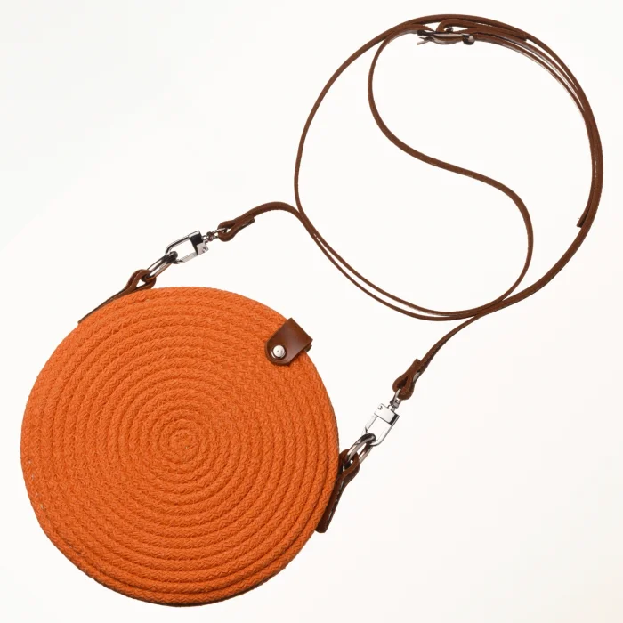 Cookie – Leather Detailed Bag It is completely handmade using cotton thread and has a diameter of 20 cm. Our products are completely handmade with high-quality genuine leather and eco-friendly materials. These unique products, designed by preserving the beauties of nature, offer you the perfect harmony of both elegance and naturalness. Dry cleaning is recommended.