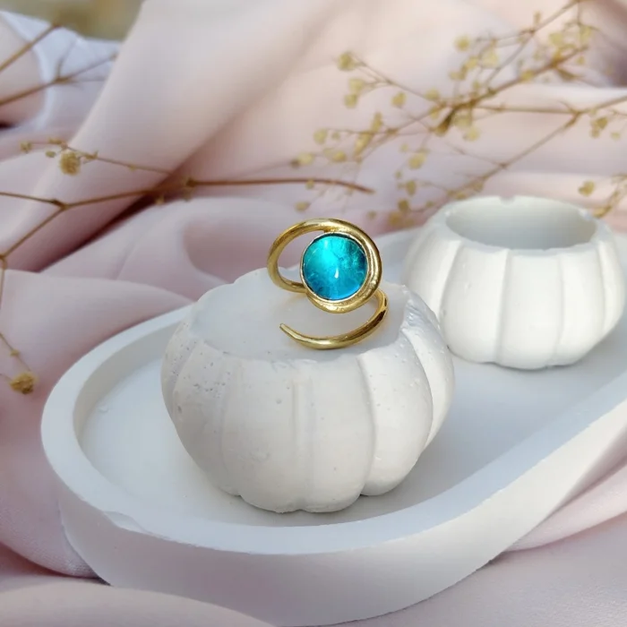 It is made flameworking glass technique and handmade one-of a kind piece. 22K gold plate on silver handmade ring.