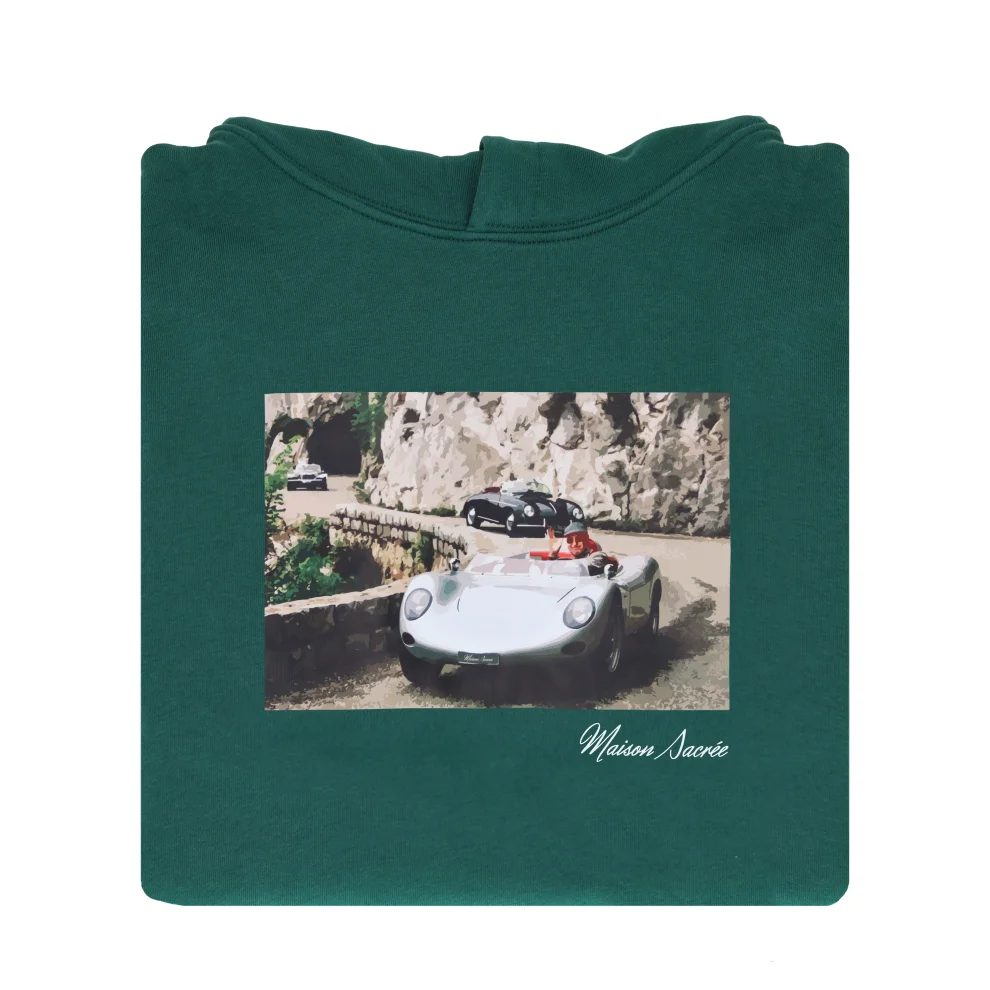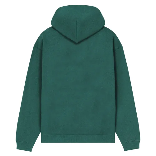 Normal cut. 100% Better Cotton certified cotton. MS design embroidery on the left chest. Fixed hood. Fabric of green color. Can be washed in the washing machine. The model wears a size Medium. Height: 1,79. Bust: 93. Waist: 74. Hip: 93.