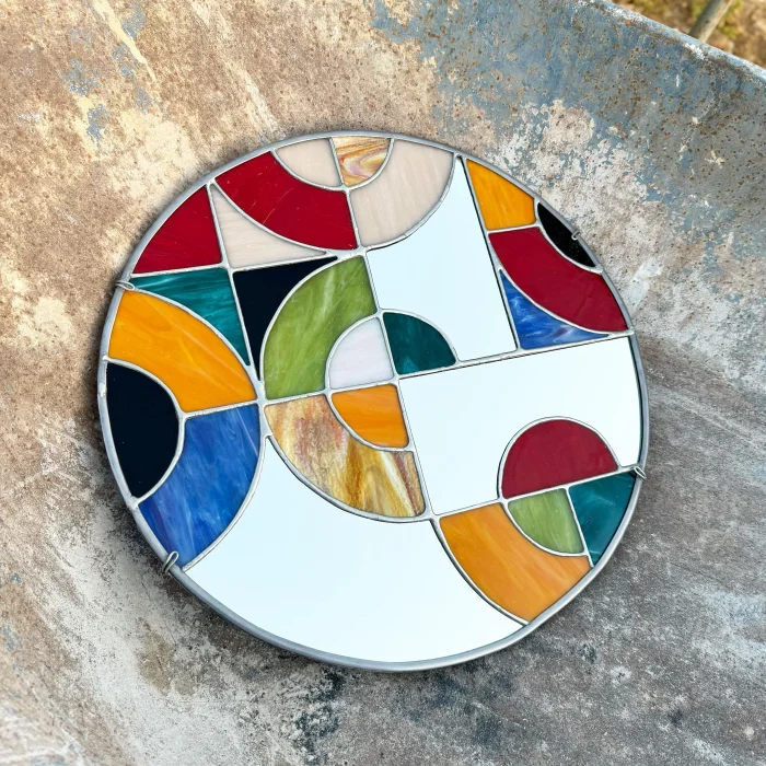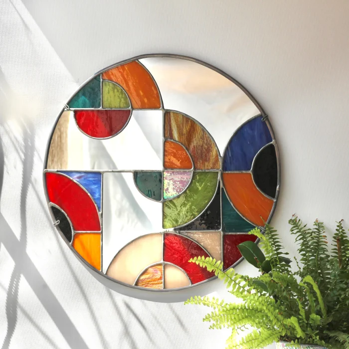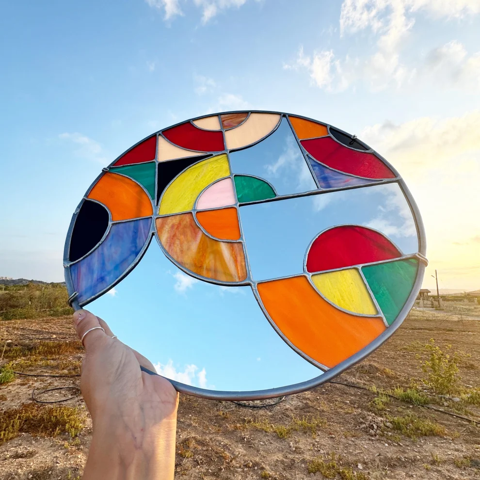 Outer dimension: 40 cm Frame: Lead, Lead came Technique: Stained glass, Stained glass 100% handmade. - 100% handmade. TR: Thank you for purchasing our handmade product and supporting our local business. We hope you enjoy it. Your comments are important to me, so I am grateful for all your feedback. Note: Avoid using heavy chemicals as cleaning agents in our products, wipe with a light fiber cloth. ENG: Thank you for purchasing our handmade product and supporting our local business. We hope you like it. Your comments are important for me so I'm grateful for all your feedback. Ps: It is best to avoid using heavy chemicals on our products as cleaning agents.