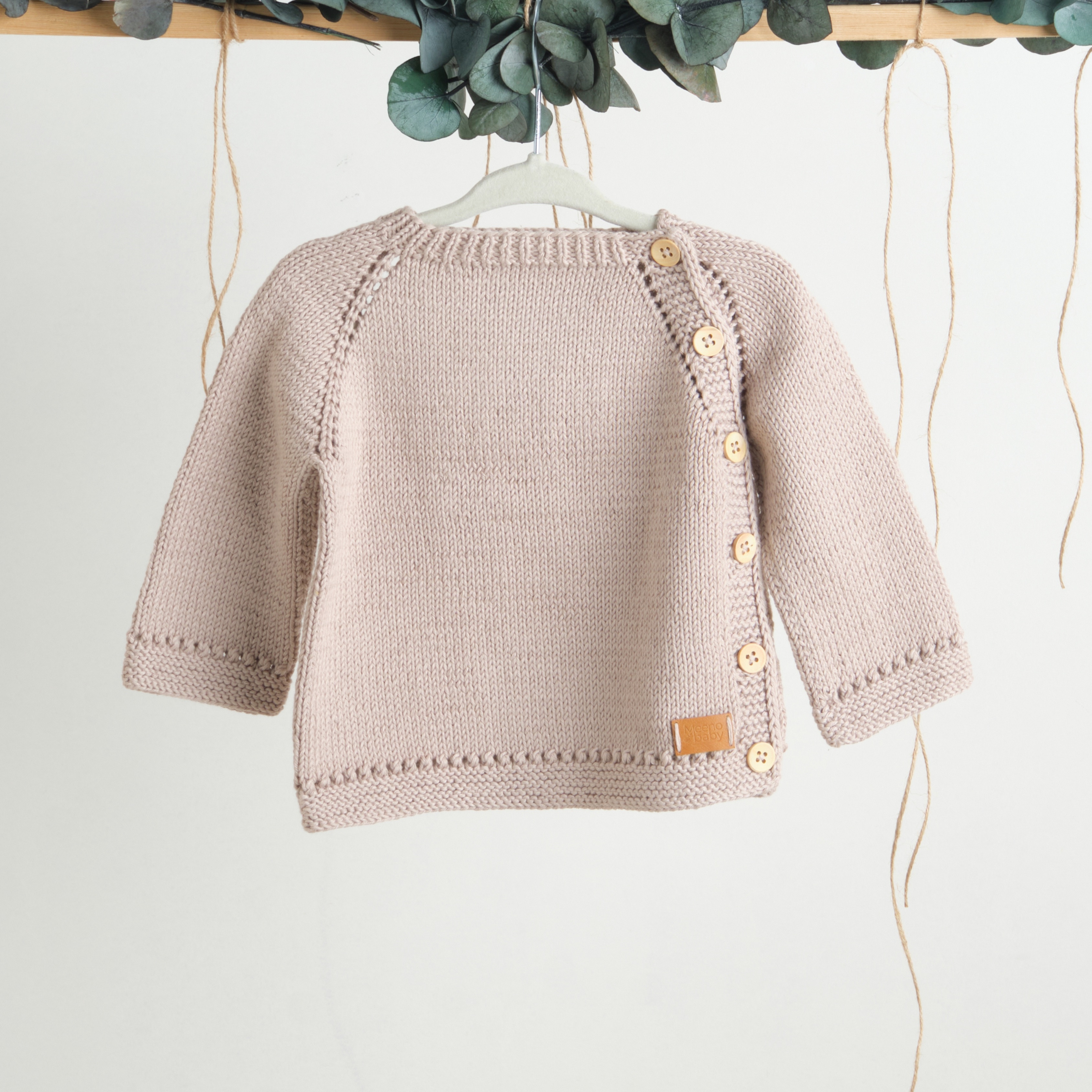 It is produced with GOTS certified, 100% organic cotton yarns. It is entirely hand-knitted. Since it is knitted with 100% cotton yarns, it is suitable for use in all four seasons.