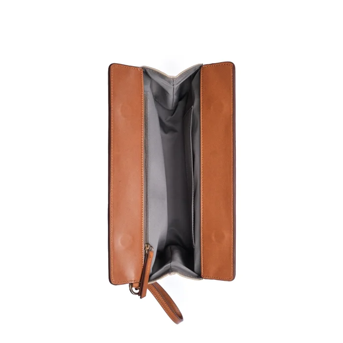 Designed with modern details, our clutch bag is made of deadstock fabrics and vegan apple leather. Apple Leather is an animal free and plant-based leather alternative, produced using fibres derived as residuals from the industrial processing of apples. The inside is lined with a fabric recycled from pet bottles, and contains a zipper pocket and a phone sleeve.