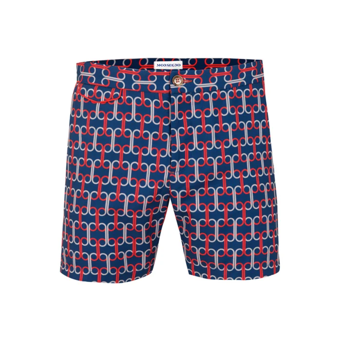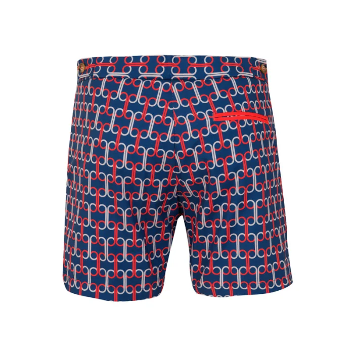 Adjustable side fasteners,bias along side pockets, fleted back pocket, slim fit swimshort.