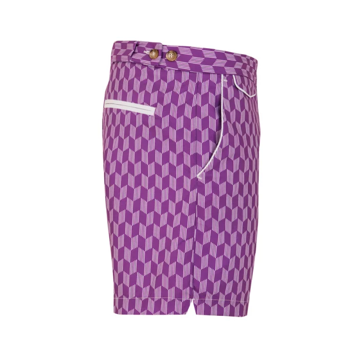 Adjustable side fasteners,bias along side pockets, fleted back pocket, slim fit swimshort.