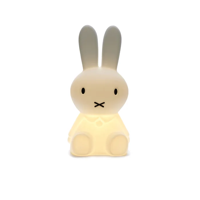 Soft and peaceful, Miffy lamps works as a night light for minors and adults. This fascinating piece of lighting shines a light, warm glow, ideal for children's fairy tale clocks, or can be used as a decor in a modern interior. The XL version is 80 cm high and illuminated by a dimmable LED.