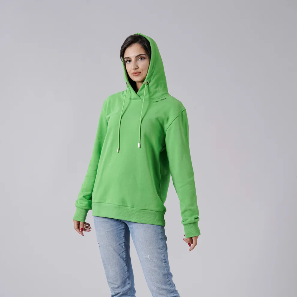 Hooded sweatshirt with embroidery detail on the back. Model wears size S.
