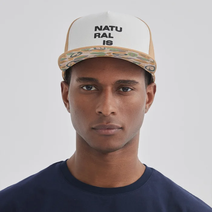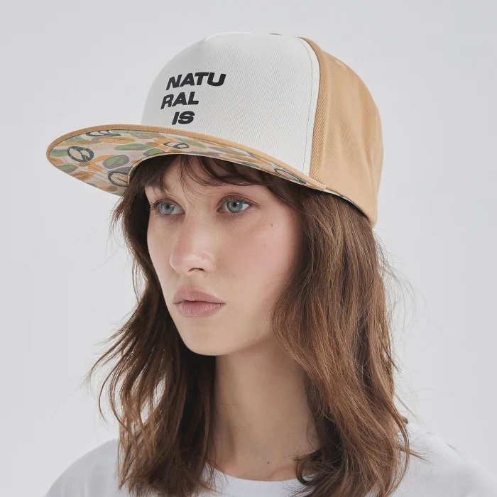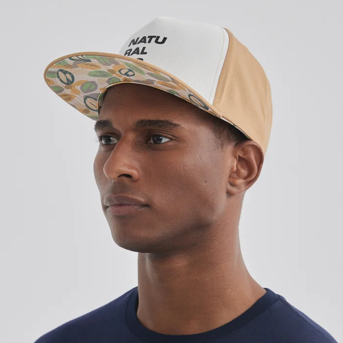 100% Cotton Cotton sweat band in the inner compartment Patterned inner cotton lining Typographic digital printing on the front side Air vents in the upper compartment Adjustable plastic clasp on the back