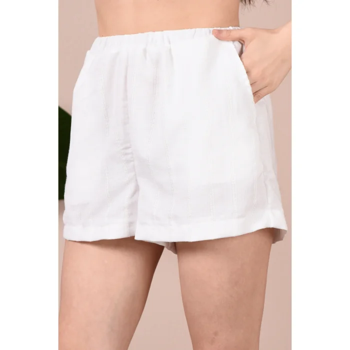 The waistband of the shorts is elastic. (Fits XS, S and M sizes.)
