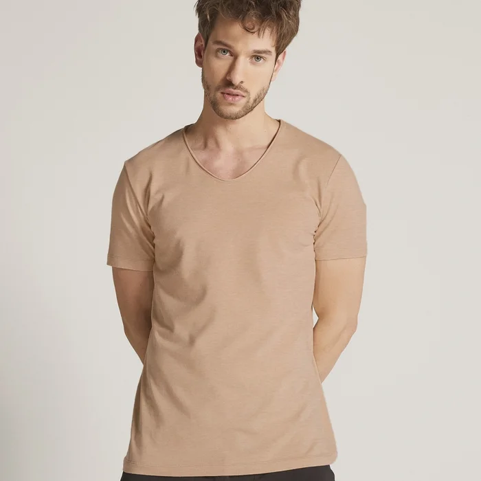 Men's Sausage Collar Basic T-Shirt made of organic cotton. It provides you comfort and flexibility all day long with its cotton texture and lycra fabric. Thanks to its breathable fabric, your skin stays more comfortable and dry. The instructions are printed on the product, not an annoying label. Our brand logo is embroidered on the sleeve of the product with a quality embroidery. Material:95% organic cotton, 5% elastane (lycra) for elasticity. GOTS certified organic cotton is used in our products. Model's measurements: Height: 184 Bust: 100 Waist: 74 Hips: 97 Size above the model: M By purchasing products produced with organic cotton, you can contribute to nature and the future.