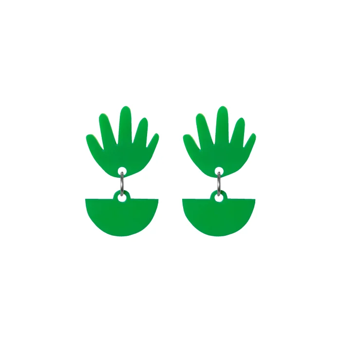2 earrings consisting of Project Anxiety icons made of waste pleats.