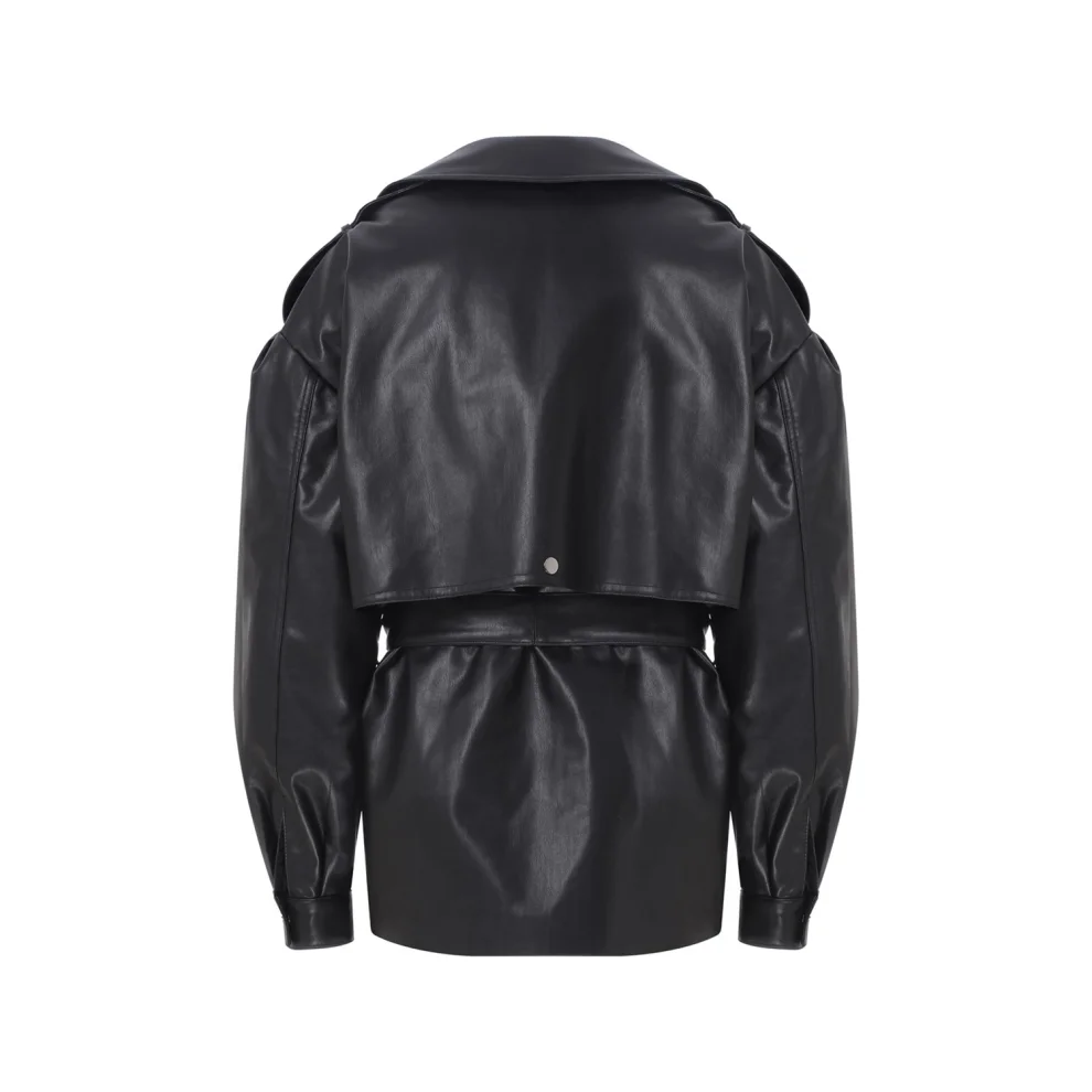 VEGAN LEATHER OVERSIZE BELTED JACKET MODEL SIZE
