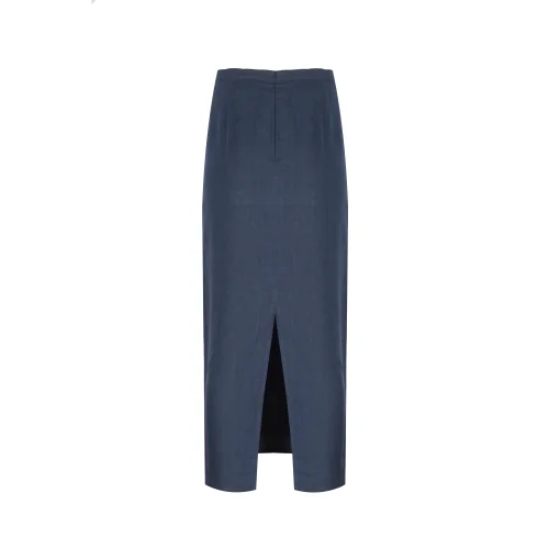 Long and slim cut pencil skirt. High waist and slit at the back. The skirt fits your body perfectly with its non-flexible linen fabric. If you're between two sizes, we recommend buying one size larger. 100% European Flax® certified linen.