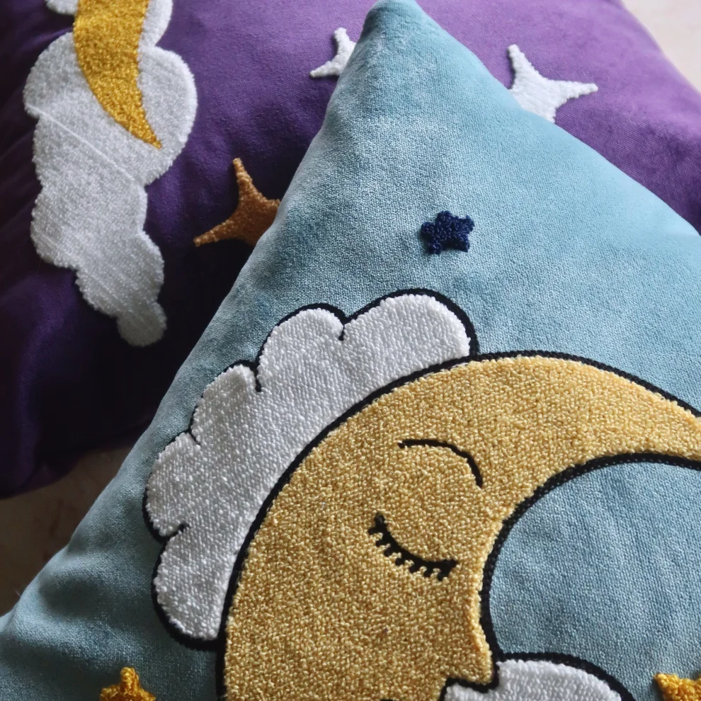 Colors: Orange, melon, white punch embroidery on dark blue velvet