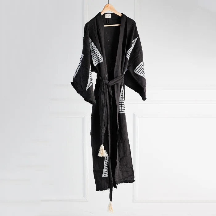 It is prepared for summer and winter use. Buldan fabric. Custom Printed Pyramid Patterned Kimono