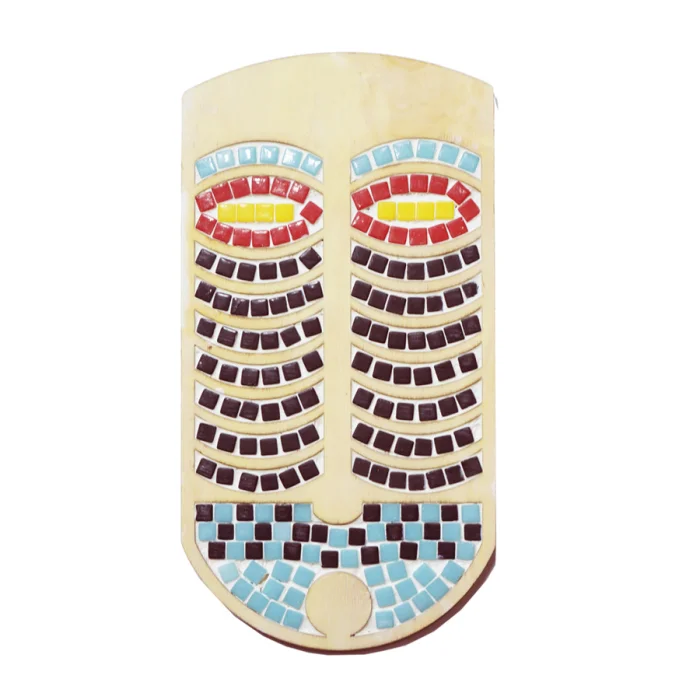 Box contents: Mosaics (as per product colors), 2 wooden templates, Glue, Grouting, sponge and wood mixer.