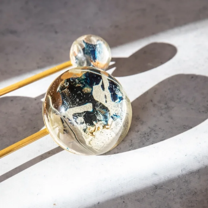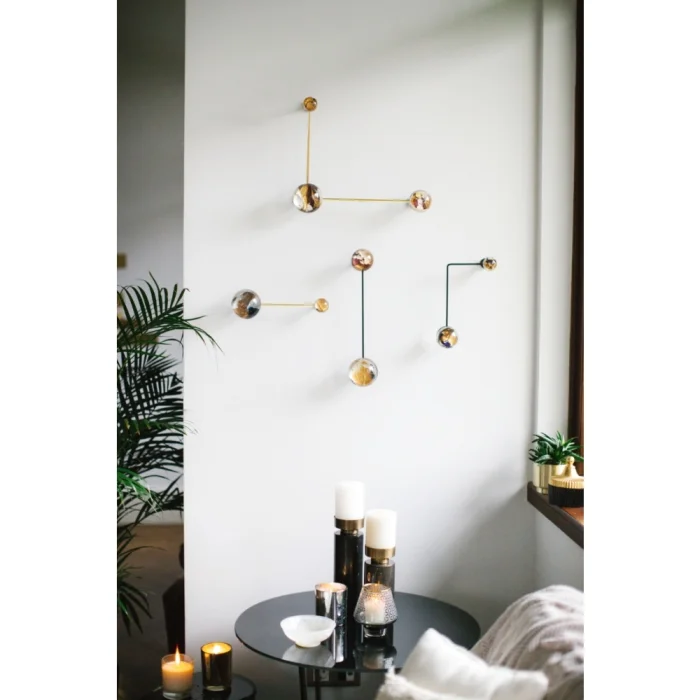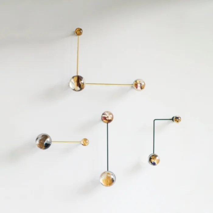 SET OF 4: Each package contains 4 metal profiles on which there are 9 semi spheres. The product is composed of 9 semi spheres made of hardened resin placed on 4 metal supports. The painting inside the product is the application of painter Melis Önalan Altıparmak.