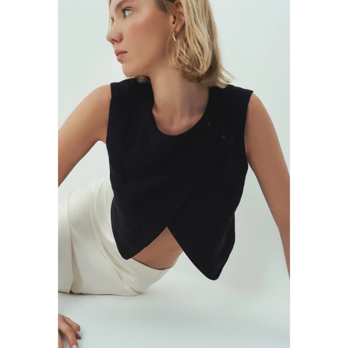 Linen Vest is made of high quality linen fabric. This particular choice of fabric enhances the softness and durability of the vest, while also providing a natural breathability. Its asymmetrical cut offers a style that is comfortable for anyone who wears the vest and fits perfectly into different sizes.