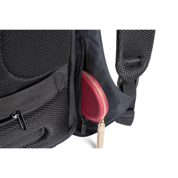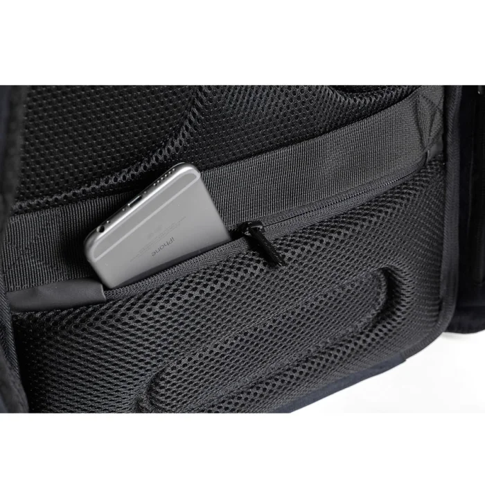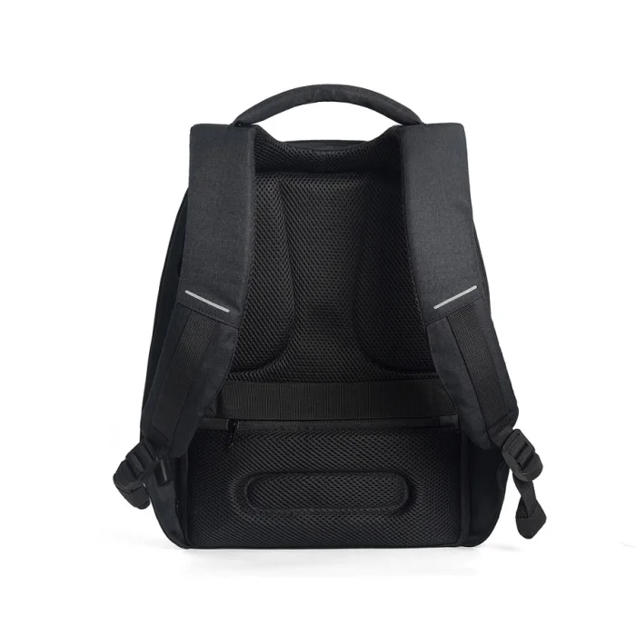It’s made out of high quality polyester and has reflective prints for your night safety. On the outside it has many hidden pockets for easy commuting. While on the inside there are padded compartments for a 14” laptop, tablet up to 9” and all your other belongings.