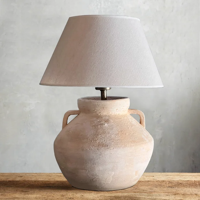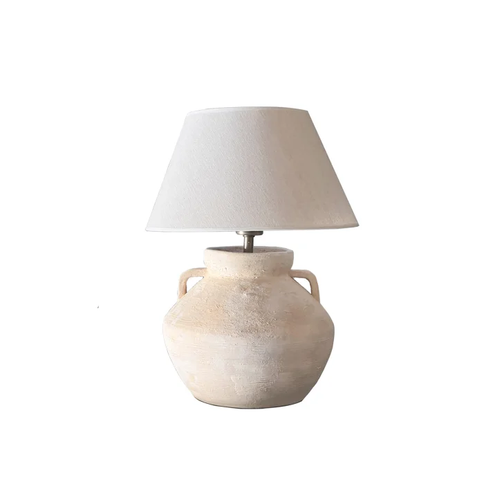 It is 100% handmade so there may be slight variations between products. High grade stoneware ceramic. ivory linen lampshade cap Antique bronze apparatus and cable E27 socket