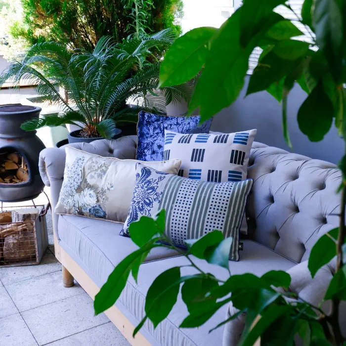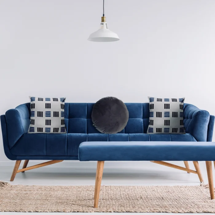 Hand-painted woodblock print pattern designProduct: Panama Blue Pillow/cushion
