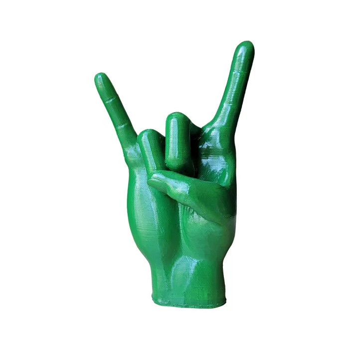 Height: 20 cm, Width: 12 cm, Depth: 7 cm Sustainable and environmentally friendly production with biopolymer material Rock sign design that draws attention with its gold color A perfect gift option for lovers of music and rock culture Ideal for those looking for modern and original home décor