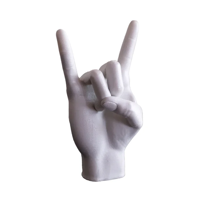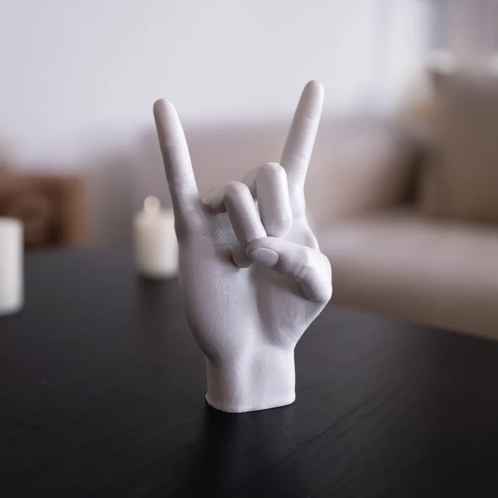 Height: 20 cm, Width: 12 cm, Depth: 7 cm Sustainable and environmentally friendly production with biopolymer material Rock sign design that draws attention with its gold color A perfect gift option for lovers of music and rock culture Ideal for those looking for modern and original home décor