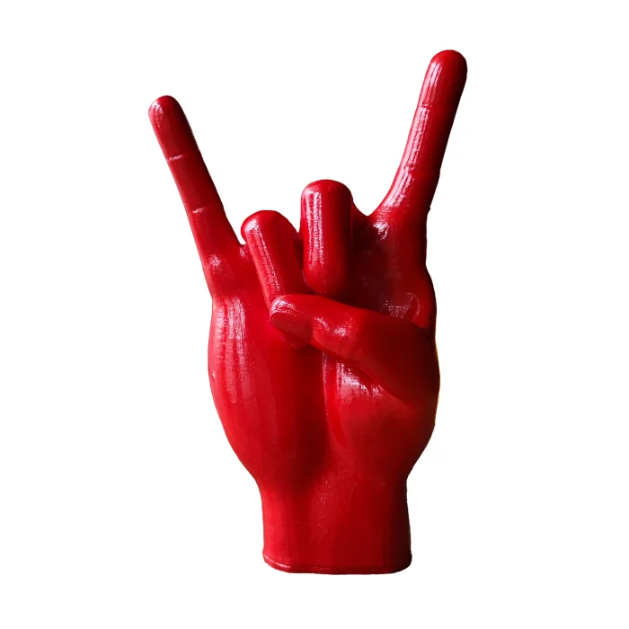 Height: 20 cm, Width: 12 cm, Depth: 7 cm Sustainable and environmentally friendly production with biopolymer material Rock sign design that draws attention with its gold color A perfect gift option for lovers of music and rock culture Ideal for those looking for modern and original home décor