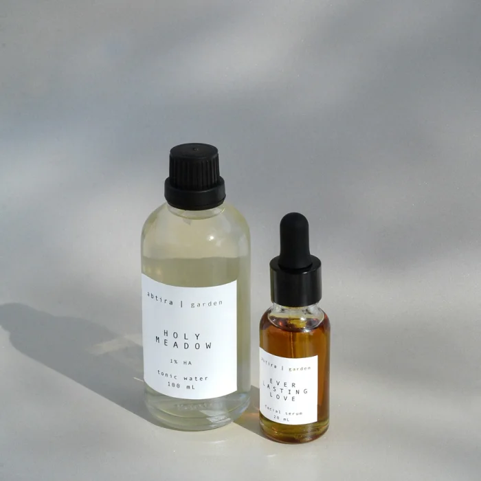 A moisturising mist for all skin types or a gentle tonic for sensitive, dry and mature skin. It contains regenerating immortelle water, balancing geranium water, tightening witch hazel water, moisturising aloe vera and soothing oat extract. Holy Meadow is additionally enriched with the smallest molecule hyaluronic acid for the ultimate moisturising experience. The tonic helps with skin redness and brings you a comforting scent of meadow fields in the summertime…
