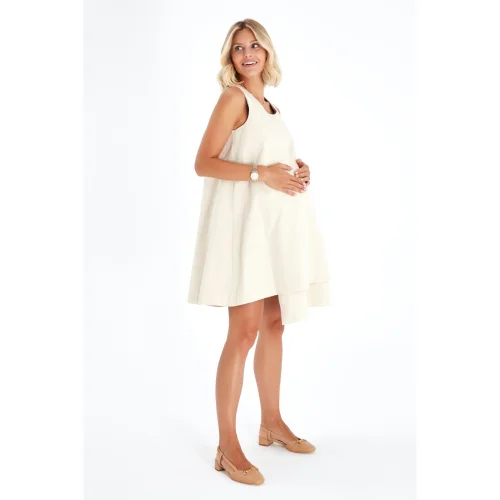 Made entirely of cotton, this dress is always with you with its stylish, comfortable and breathable fabric structure. You can use the front piece as a curtain by opening the hidden snap under the left arm, you can easily breastfeed through the opening on both breasts without the need for a breastfeeding cover. It is designed so that you can breastfeed anywhere, without looking naked, away from the disturbing gaze around you. You can use it during breastfeeding and subsequent periods. Remember that your baby will like it as much as you if you don't use the breastfeeding cover!
