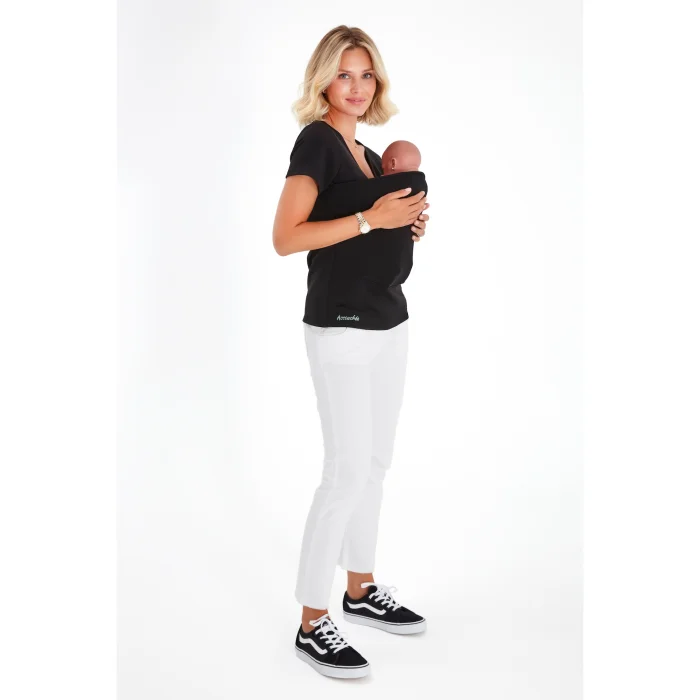With this t-shirt made of reinforced fabric, you can continue to do your daily work while carrying your baby comfortably in your arms in the first months. After reuniting with your baby, you will be surprised to see that such a small person expects such great attention. At such moments, this t-shirt will be your savior and will allow you to do other things while keeping your bond with your baby permanent.