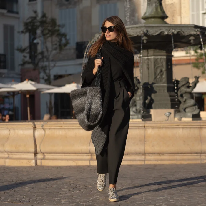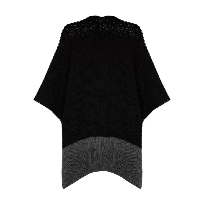 Two-color poncho. Wool content. Hand knitted. The length is the length that covers the hips. Comfortable and oversized form Standard size.
