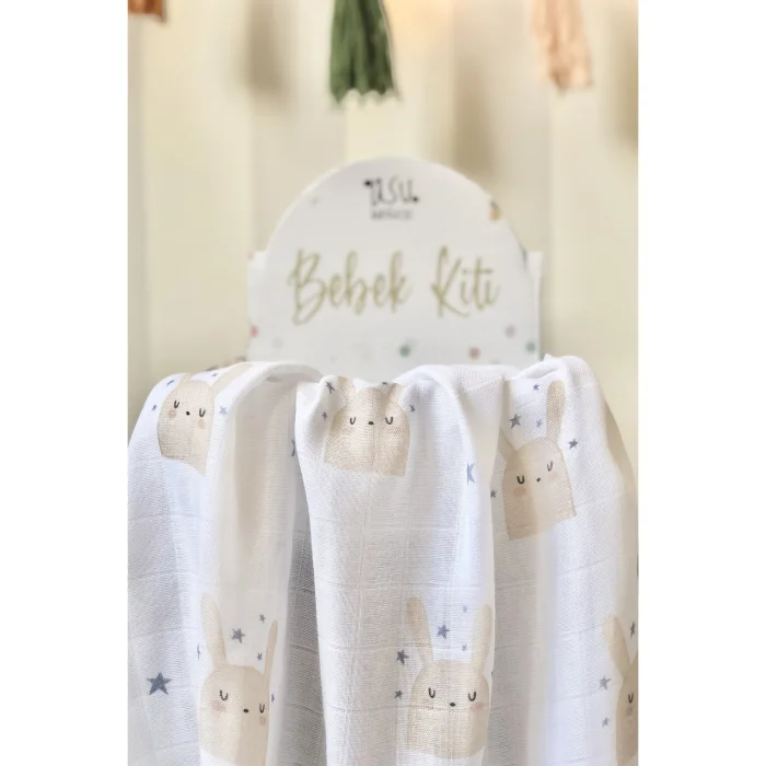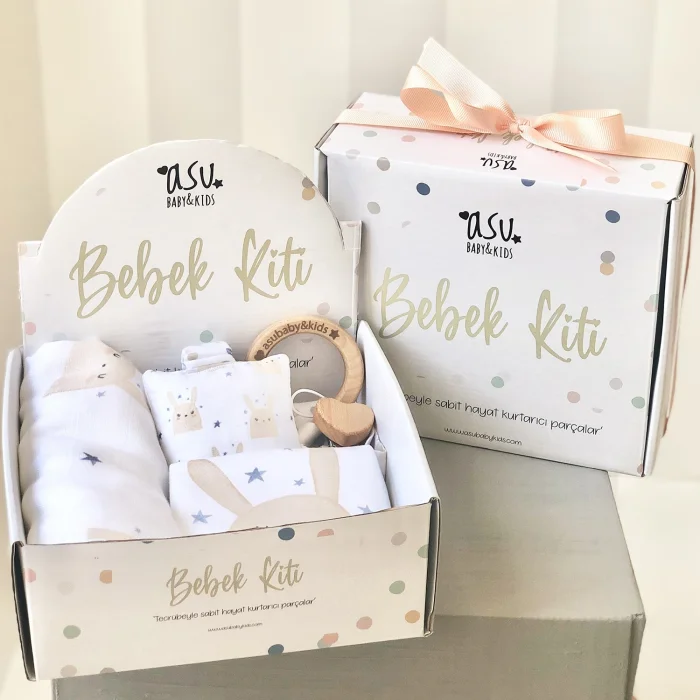 Asu Baby&Kids Baby Kit, Our baby kits consist of life-saving parts that babies need from birth, which we bring together with small touches with the mother's experience. It reaches you or your loved ones in a stylish gift box! What's in the Baby Kit? * Apron made of 100% organic cotton with GOTS certificate on the front and waterproof terry cloth on the back *GOTS certified 100% organic cotton toy, CE certified Maple discasher *GOTS certified 100% organic cotton and CE certified Maple pacifier strap *GOTS certified 100% organic bamboo Muslin Cover (80x120cm) While we prepared the front side of our aprons with 100% organic cotton in special patterns, we prepared the back sides with waterproof terry cloth to eliminate the worry of mouth water wetting the chest during the teething process. We chose our teethers from CE certified Maple, which is a bacteria-free tree species and is used in various treatments in the field of alternative health. To disinfect it, you just need to soak it in slightly diluted apple cider vinegar for a few minutes, rinse and dry. Then you can rub it with olive oil and give it back to your baby's hand with peace of mind. We added a toy to our teether that we prepared with a 100% Organic Cotton fabric, both visual and sensory. Thanks to the snap fastener that allows it to be mounted together, you can easily remove it and demolish it at 30•C. If you wish, you can also use it as a stroller toy. For the pacifier strap, we combined the Maple clip with the 100% organic cotton pacifier strap. Again, thanks to the snaps, you can sterilize them separately at any time. Muslin cover is the most important life-saving product of our Baby Kit, which is why a mother needs it most from birth. Muslin covers, *Blanket * Stroller cover * Car Seat Cover * Breastfeeding Cover * Shoulder Cloth *Towel * Changing Cover *Canopy * You can use it as a windbreaker. Our GOTS certified 100% Organic Bamboo muslins, * Super absorbent and stain resistant. * It does not sweat because it breathes. * Lightweight but durable. * It softens more and more as you wash it. * Dries quickly. * Long-lasting and very convenient. Our muslin covers are prepared to meet your needs in the ideal size of 80x120cm.