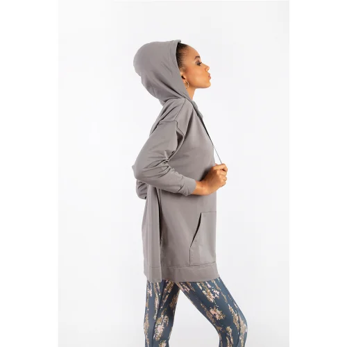 It will become the go-to part of your wardrobe with its comfortable cut, kangaroo pockets that will provide comfort on walks and a useful hood option. It is available in 2 color options, anthracite gray and ecru. You will feel warm inside with its oversize cut and soft fabric texture. It has a comfortable and slightly long length that covers the hips. We have designed it so that you can use it in all your daily activities. You can use it right after sports, when you go to sports, hiking and in your daily life.