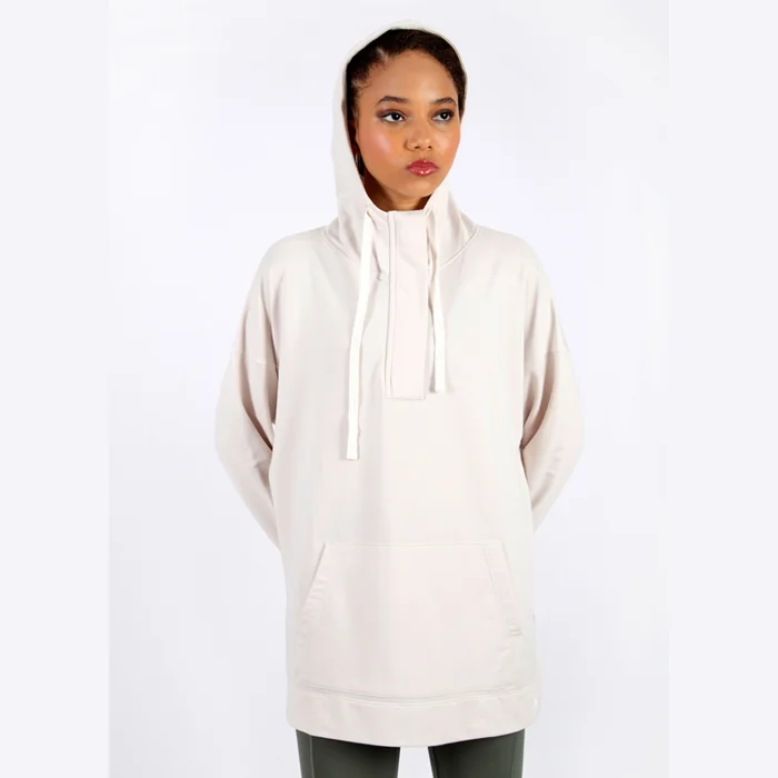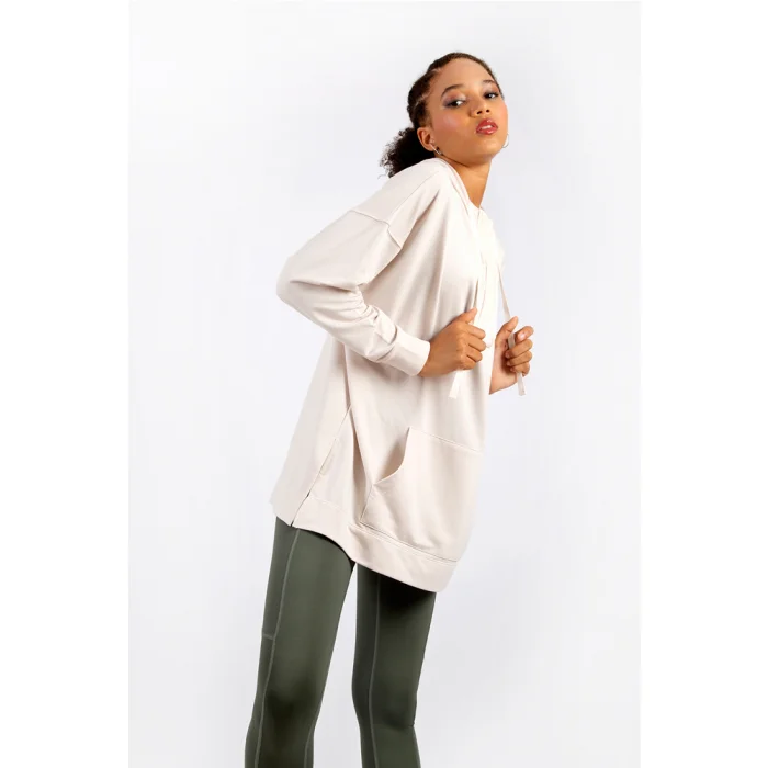 It will become the go-to part of your wardrobe with its comfortable cut, kangaroo pockets that will provide comfort on walks and a useful hood option. It is available in 2 color options, anthracite gray and ecru. You will feel warm inside with its oversize cut and soft fabric texture. It has a comfortable and slightly long length that covers the hips. We have designed it so that you can use it in all your daily activities. You can use it right after sports, when you go to sports, hiking and in your daily life.