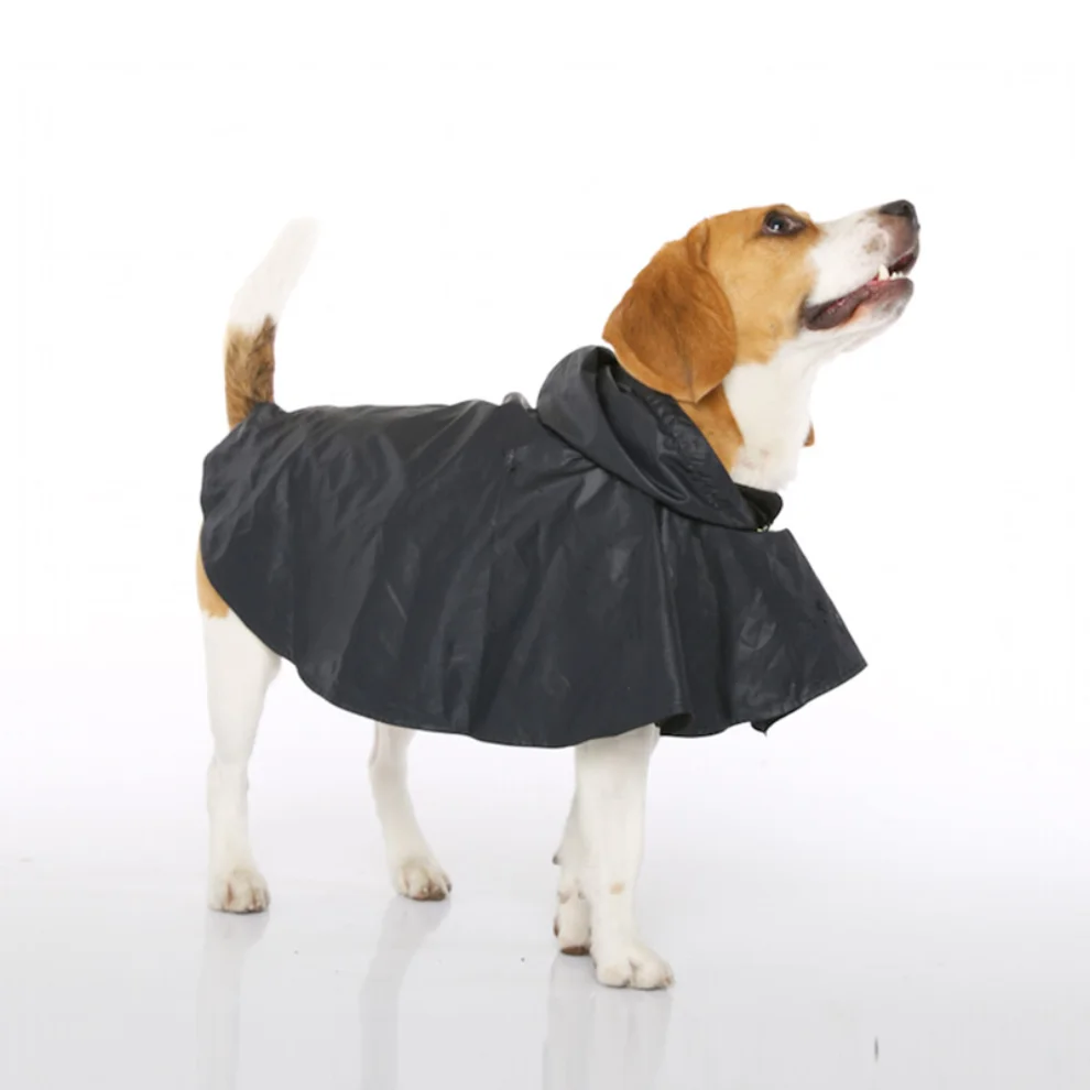 Black water-repellent poly fabric. Black with white polka dot fabric lined hood with neon green drawstring and zip secure. Interior waist strap with adjustable snap button fastening. Ful-l mesh lining.