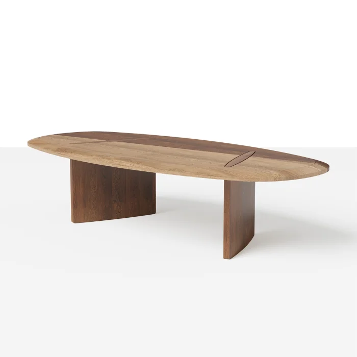It is a coffee table that draws attention with its angled legs and structure that can be read on the table, and its double color polish.